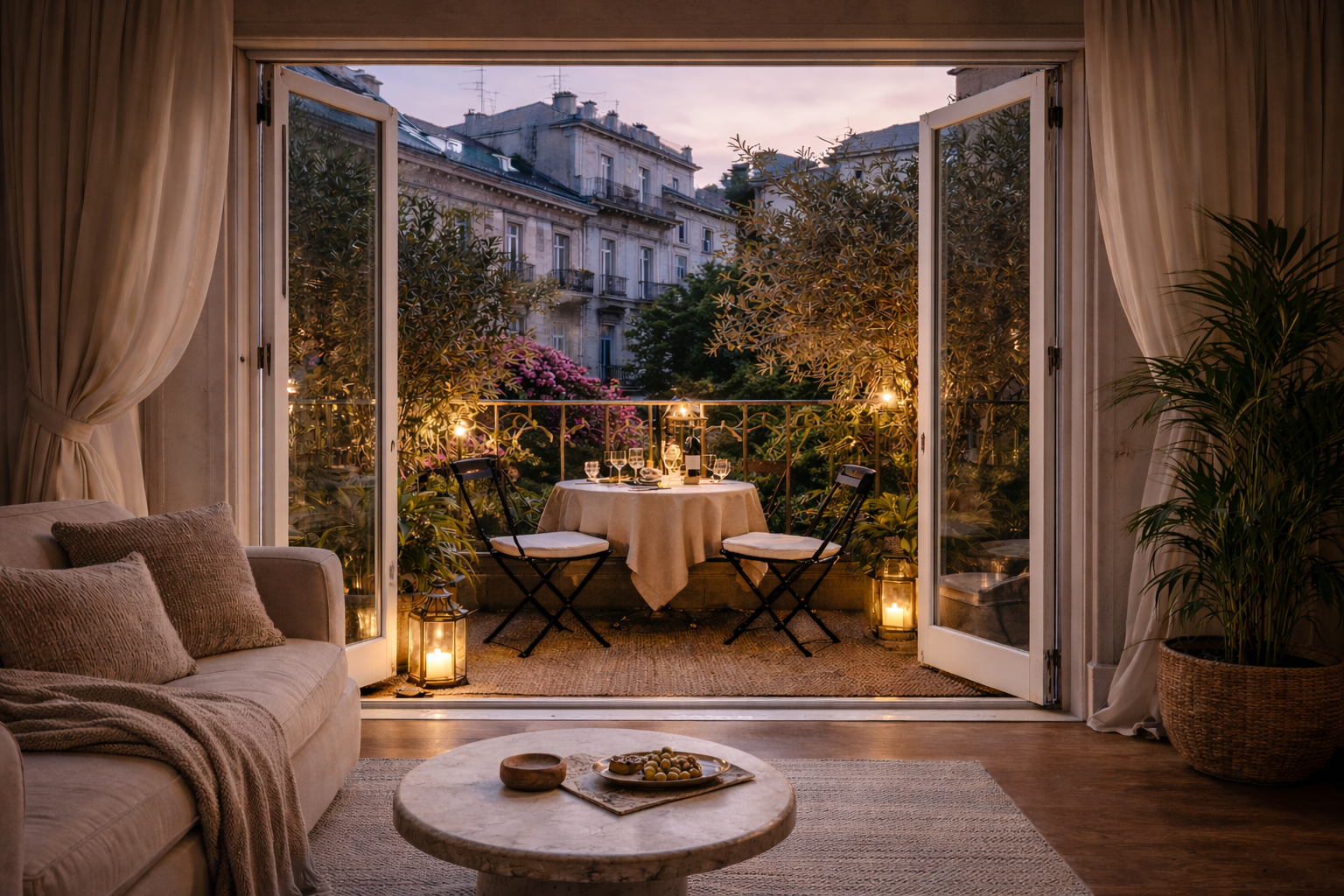 E se lo spazio non consente di accogliere un tavolo e qualche seduta, nessun problema: basta lasciare la vetrata aperta e trasformare il balcone in una quinta scenica d’atmosfera.