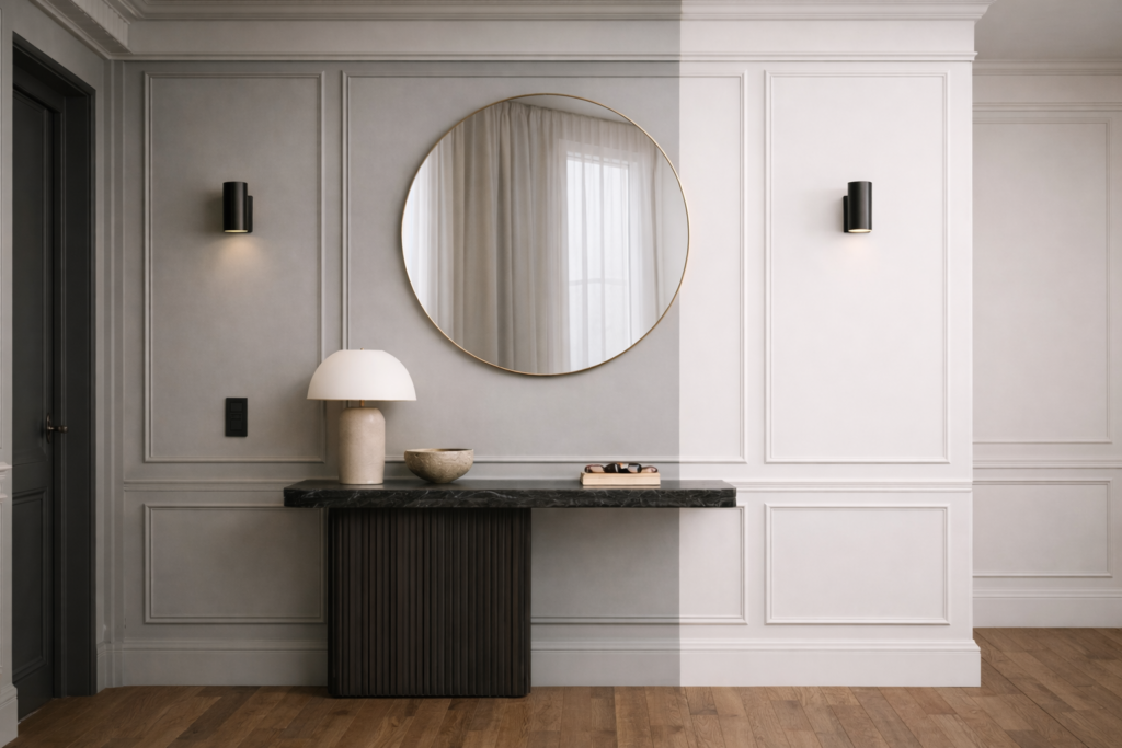 - il Color capping, invece, è il momento in cui il soffitto smette di essere l’eterno escluso. Qui il colore cambia, spesso si intensifica, e serve a chiudere visivamente la stanza, a modificare la percezione delle proporzioni, a portare lo sguardo verso l’alto oppure, al contrario, ad abbassare l’ambiente e renderlo più raccolto. Quindi sì, finalmente si parla anche della quinta parete (cap). E direi anche era ora.
