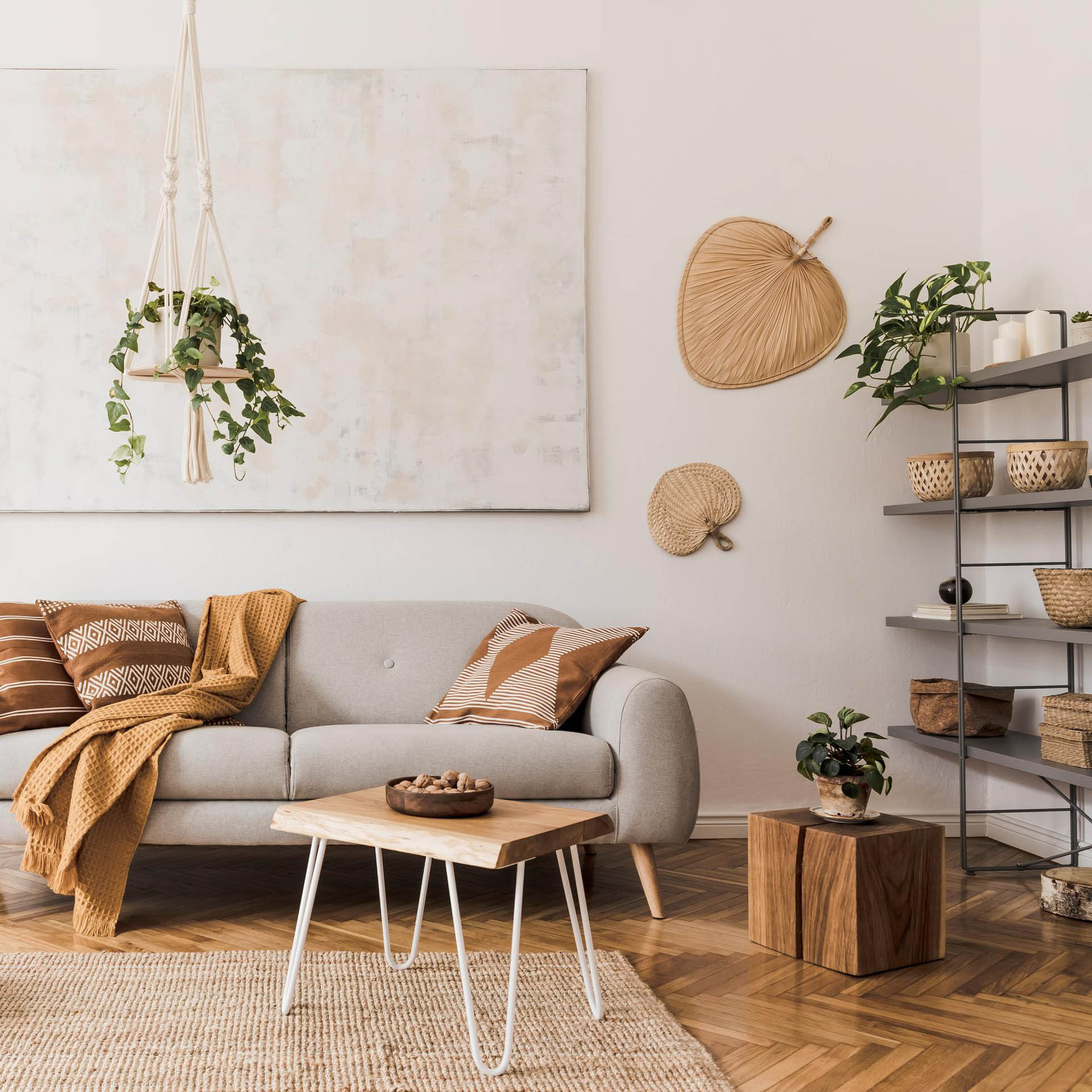 Textured Rugs: Soft, woven textures add warmth and contrast to the room’s clean lines.
